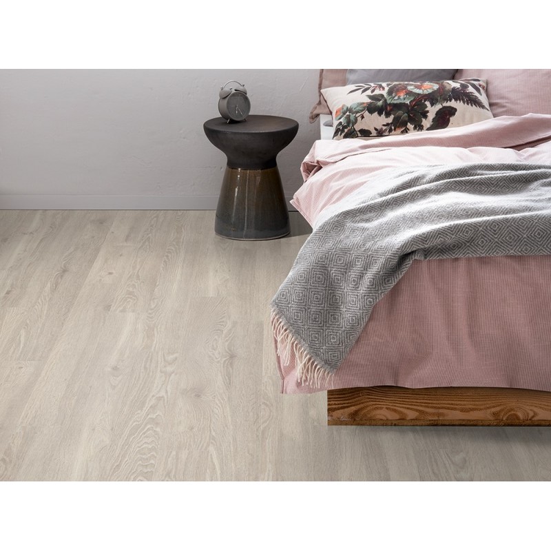 Дуб Кортон белый – это декор ламинированного напольного покрытия с элегантной имитацией древесины дуба светлого оттенка.