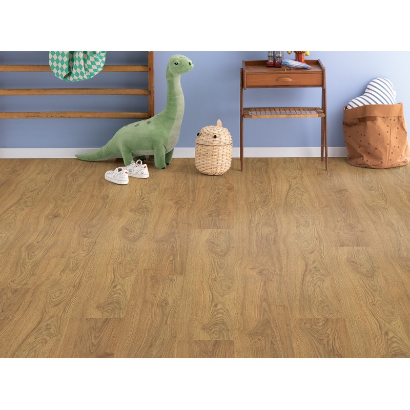 Дуб Азгил медовый – это декор ламинированного напольного покрытия с имитацией деревянного пола из натуральной древесины теплого оттенка.